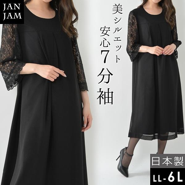 レディース 7分袖 ロング丈 シースルー袖 日本製 メッシュ素材 花柄レース 卒業式 ロング丈 Ll フォーマルワンピース 送料無料 大きいサイズ 入学式 母 服 3l 4l 5l 6l